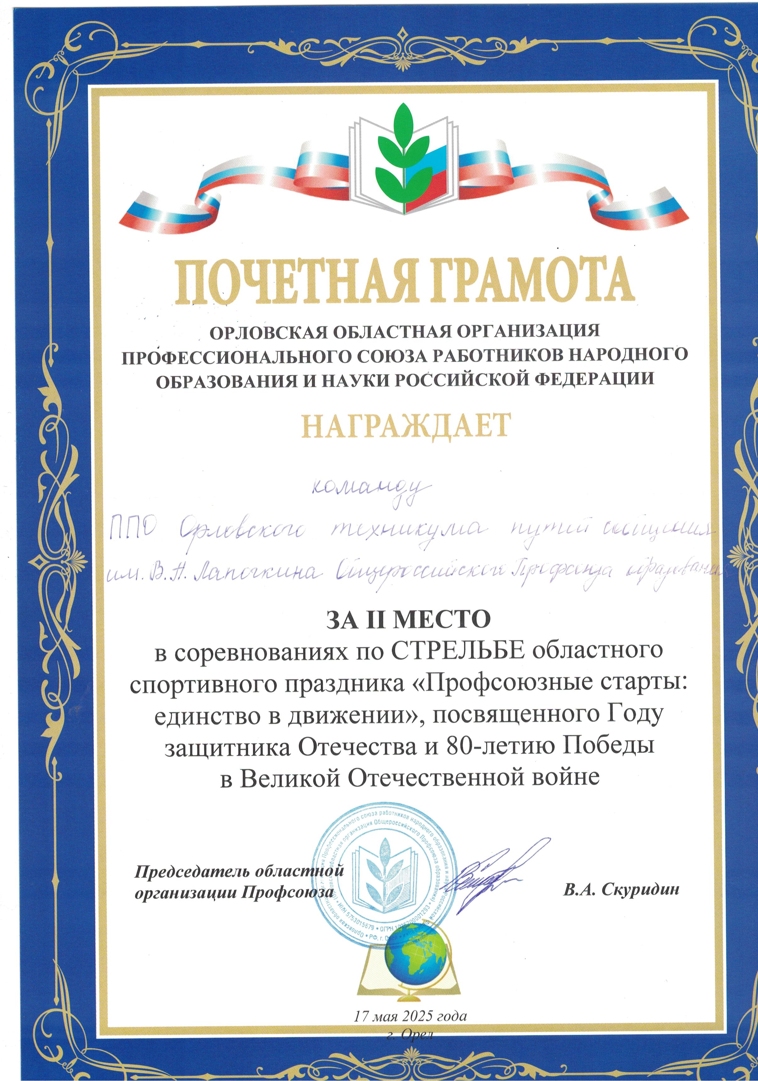 БПОУ ОО «Орловский техникум путей сообщения им. В.А. Лапочкина»