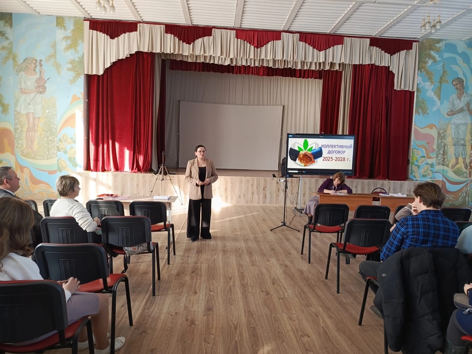 📣На общем собрании трудового коллектива председателем первичной профсоюзной организации преподавателей и сотрудников техникума ОТПС им. В.А. Лапочкина Русаковой О.Л. были подведены итоги действия предыдущего документа социального партнерства, отмечена положительная динамика в отношениях между работодателем и работниками по введенным ранее нормам и мерам поддержки, а также озвучены новые пункты и положения коллективного договора, направленные на защиту прав и интересов работников на предстоящие 3 года.